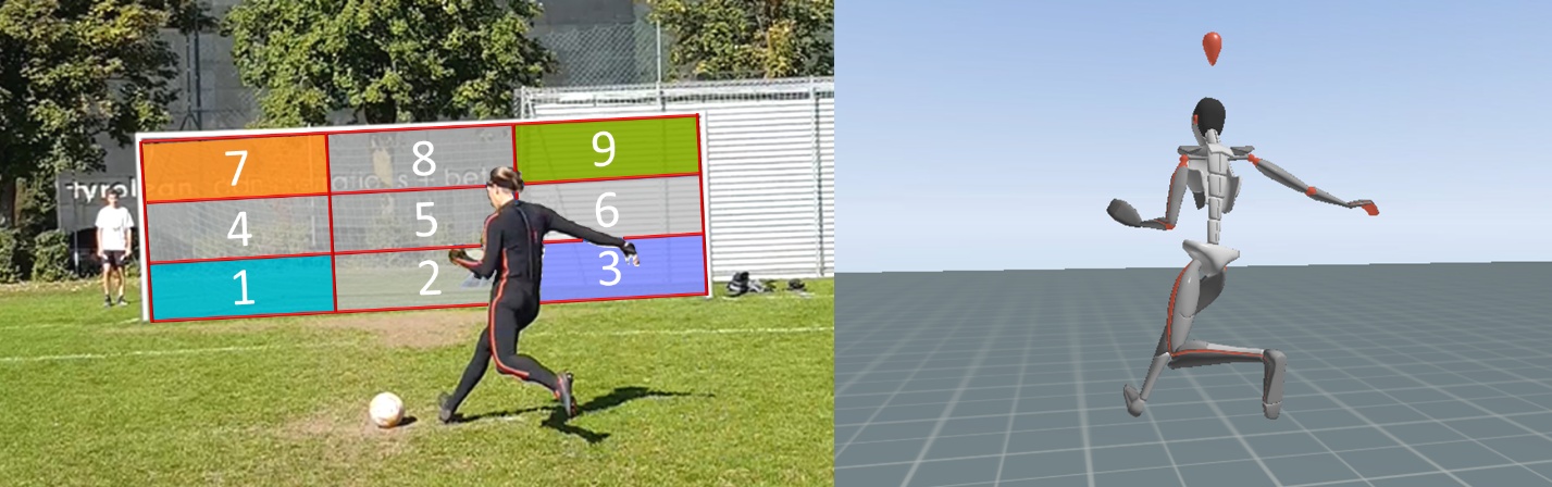 Soccer matches are often decided by a small margin of goals, making goal-scoring opportunities, particularly set-piece situations, critical moments in the game (Dimov & Atanasov, 2022). Among these, the penalty kick stands out due to its structured nature and high scoring opportunity, often determining the outcome of matches, especially during shootouts (Buscà et al., 2022). For an outfield player achieving a successful outcome (i.e., scoring a goal) in a penalty kick requires the player to balance ball speed, placement accuracy, and potentially deception (Wood & Wilson, 2010). For a goalkeeper, visual cues about the opponent’s body segment postures and movements while taking the penalty kick may lead to anticipations and predictions of the ball trajectory (Diaz et al., 2012; Lees & Owens, 2011). For both actions, producing the kick and reading the kick, the actual complex, multi-segmental coordinated movement of the kicking person, often referred to as the “technique”, plays a fundamental role. While the outcome and performance metrics of a penalty kick (e.g., shot placement) are directly measurable, the actual technique—i.e., the whole-body coordination involving the interaction of the upper body, pelvis, standing and kicking leg (Lees et al., 2010), that links a player's movement to the specific outcome—is difficult to quantify.
